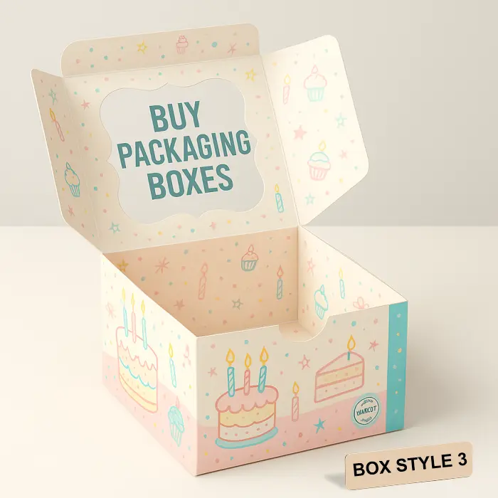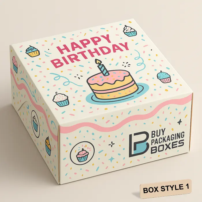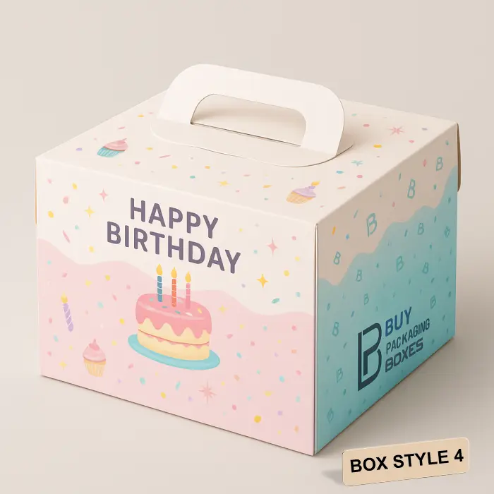 | Box Style | Custom Birthday Cake Boxes (Fully Customisable) |