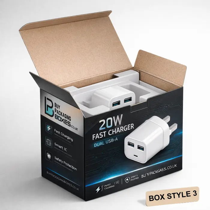 Custom electronic packaging boxes rely on internal organisation. Inserts help stabilise cables, adapters, or devices so they don’t collide inside the carton.